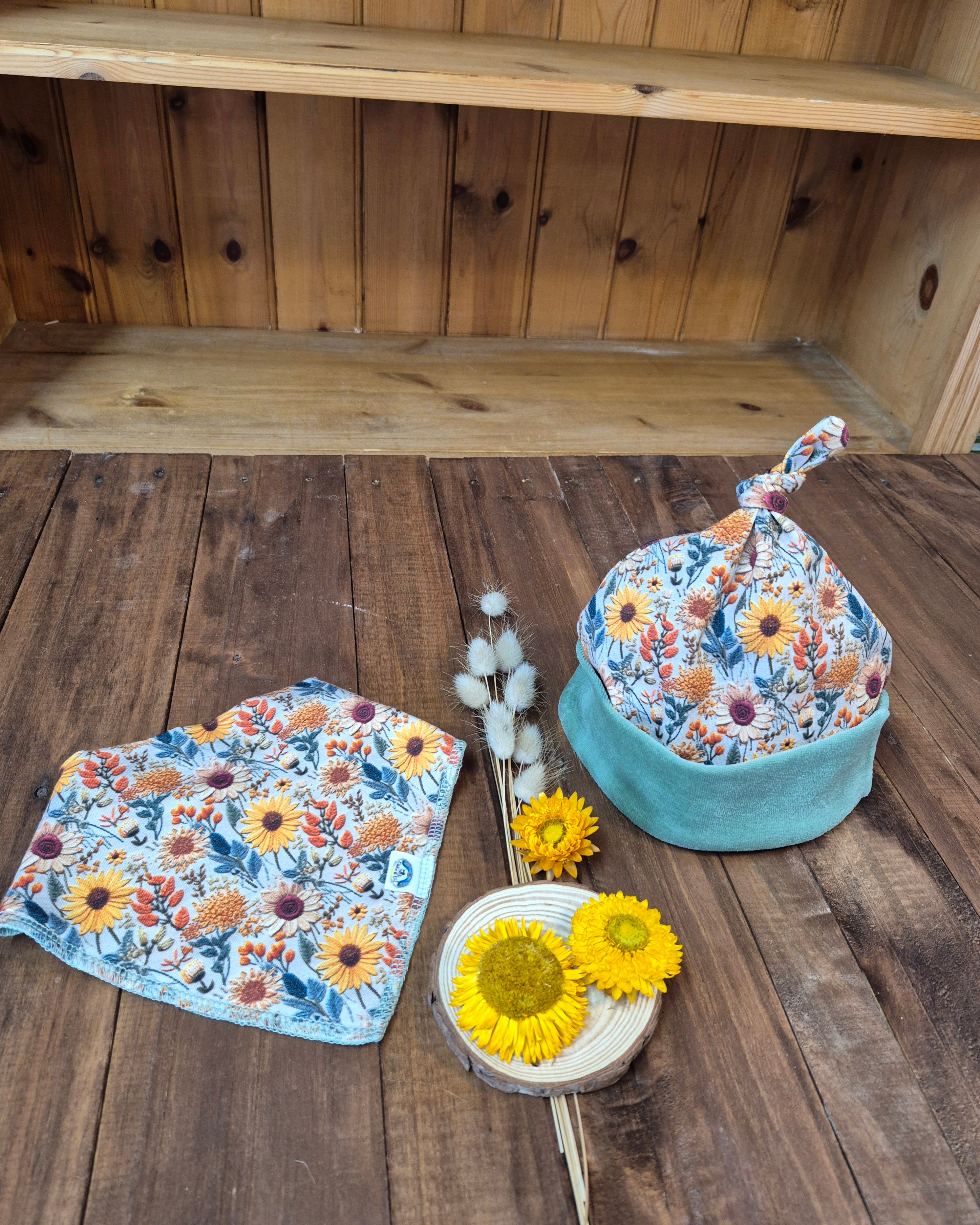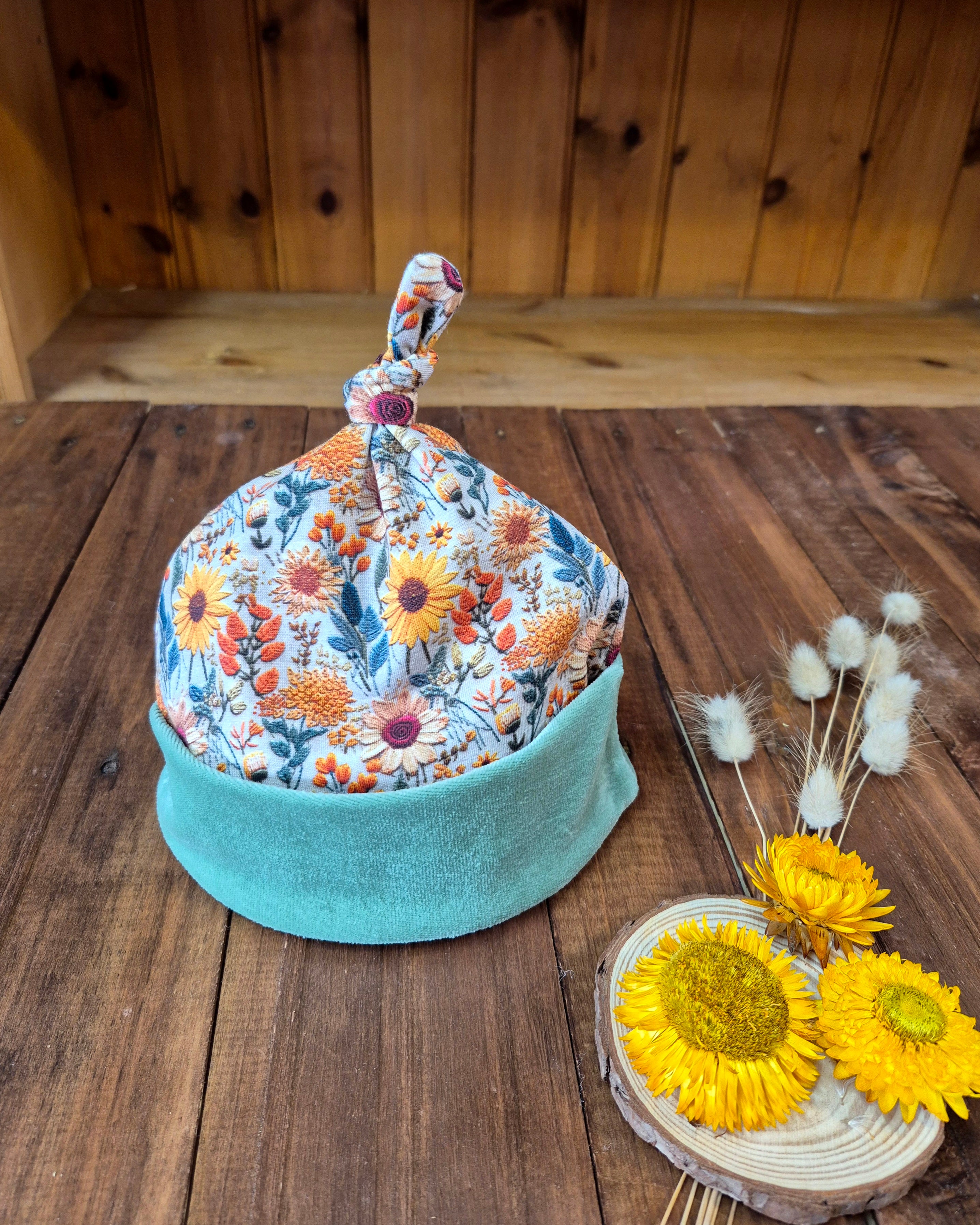 Organic Sunflowers Top Knot Hat